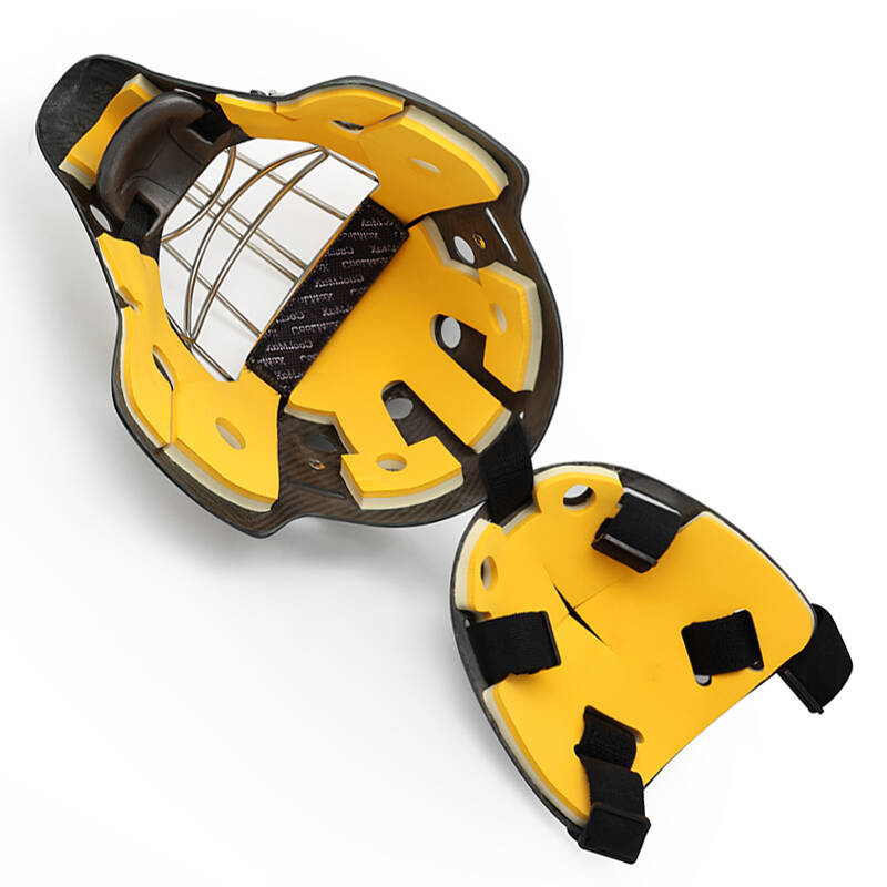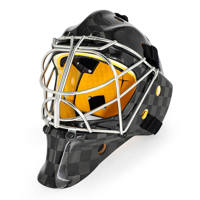 Insgesamt bietet der GY-GH8000C-C8 Cat Eyes Carbonfaser-Hockey-Torwarthelm mit seiner mehrschichtigen Kohlefaser- und Glasfaserschale, der Absorptionsschaumauskleidung und dem Edelstahlkäfig überragenden Schutz, Festigkeit und Haltbarkeit. Es wurde entwickelt, um Torhütern auf allen Spielniveaus maximale Sicherheit und Leistung zu bieten.
