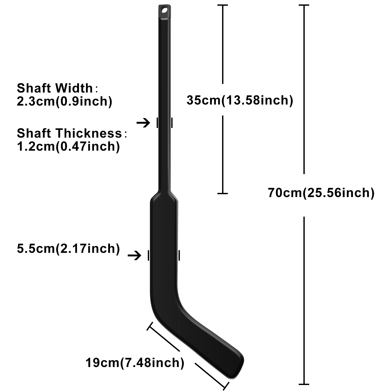 Die kompakte Größe unseres Glasfaser-Mini-Eishockey-Torwartschlägers ist speziell auf Kinder und Anfänger-Torwarte zugeschnitten. Es ist leicht zu greifen und zu kontrollieren und ermöglicht präzisere Bewegungen während des Spiels. Dies macht es zu einer ausgezeichneten Wahl sowohl für Indoor-Trainingseinheiten als auch für Hockeyspiele im Freien.